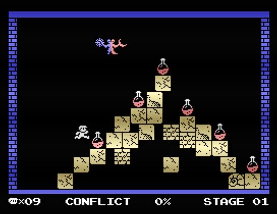 主人公カイロスをカーソルとスペースキーで操作します。カーソルキーの[←][→]で左右に走り、[↑]でジャンプします。斜めジャンプは[←]か[→]を押しながら[↑]を押す。スペースキーでブロックを生成、吸収します。ブロックを足場にすると高い所に行けます。
